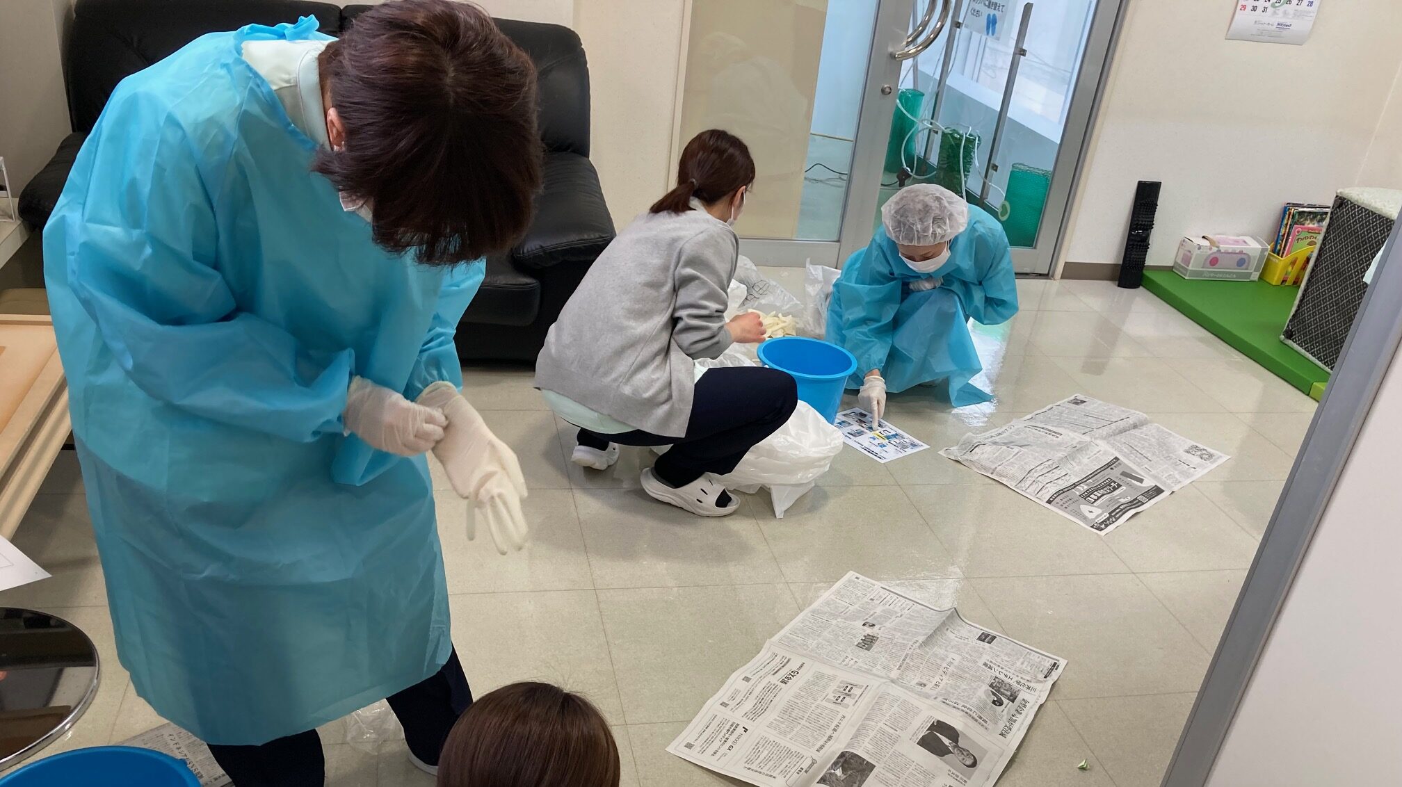 3月の勉強会は、感染症②嘔吐物の処理実践編でした。